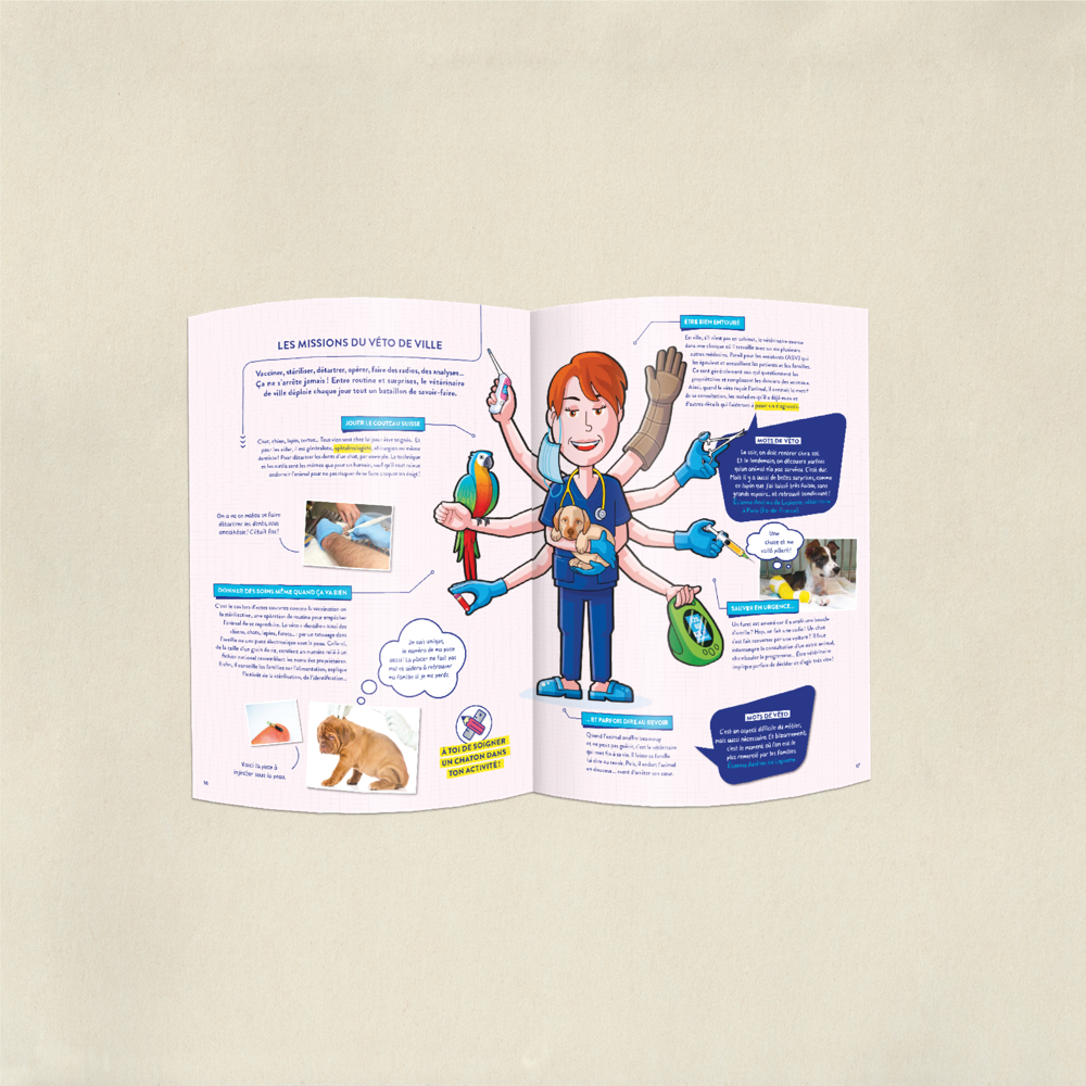 • 1 livre documentaire avec un dossier éducatif pour découvrir le métier de vétérinaire : en ville, à la campagne, pour les animaux sauvages…