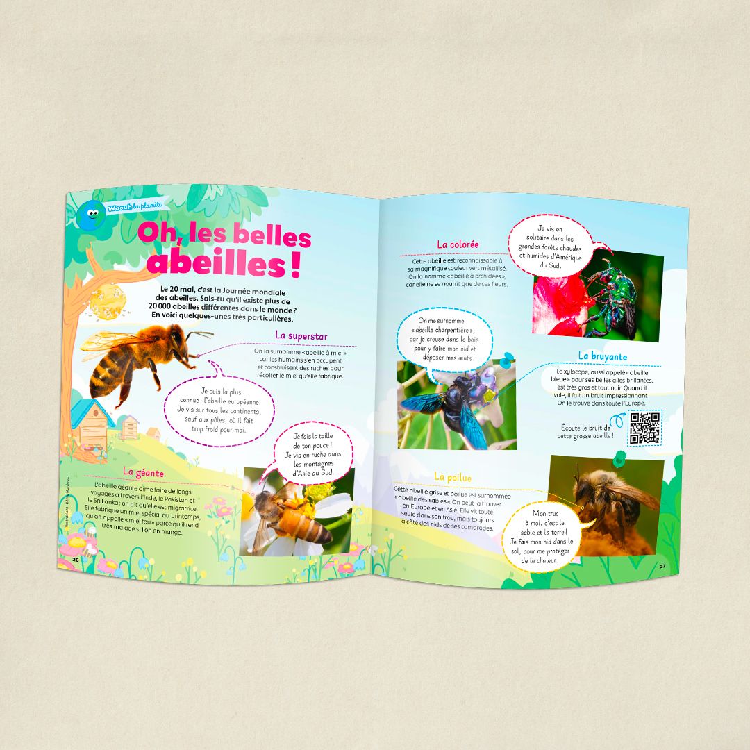 Dans le magazine, découvre tous les secrets des chats : leur vision nocturne, leur anatomie incroyable et même leur langage ! Et plein d’autres rubriques amusantes : on t’explique comment on fait un dessin animé, on te fait découvrir des abeilles surprenantes et bien sûr l’histoire de Bamboo !