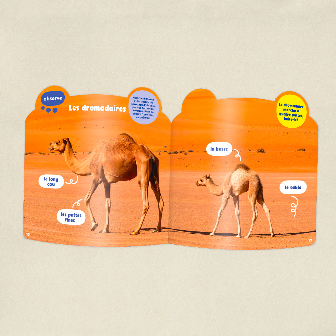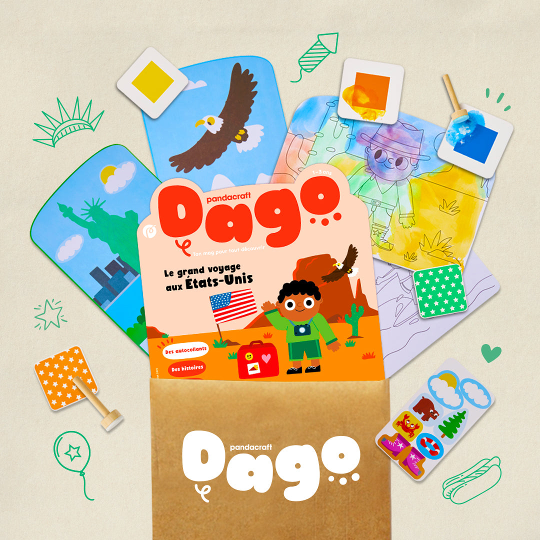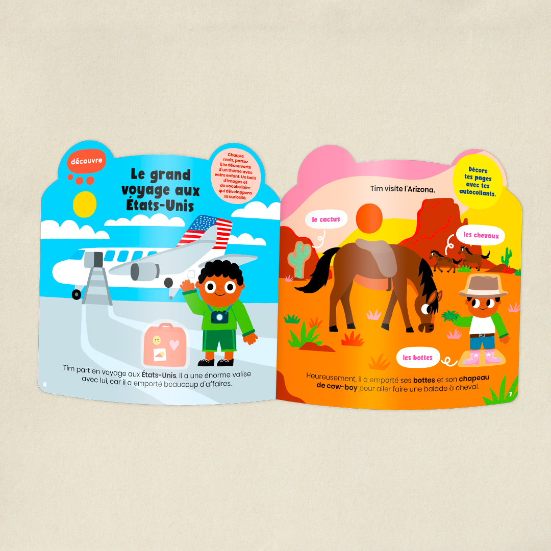Dans le magazine, partez en voyage à travers les paysages des États-Unis avec un grand imagier et plein d’autocollants. Découvrez aussi une histoire toute douce de cache-cache et une activité pour créer des boules de glace !